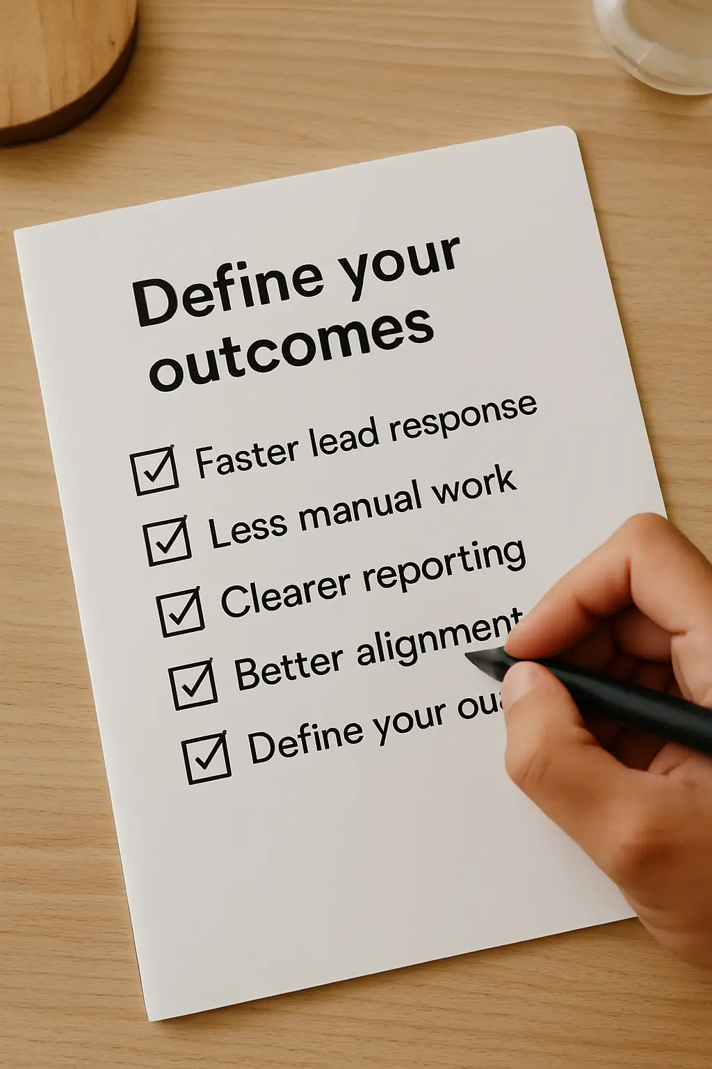 List five concrete results you want in Saudi Arabia, for example faster lead response, less manual work for the team, clearer reporting for leadership or better alignment between marketing and sales. Turn this list into a simple checklist.