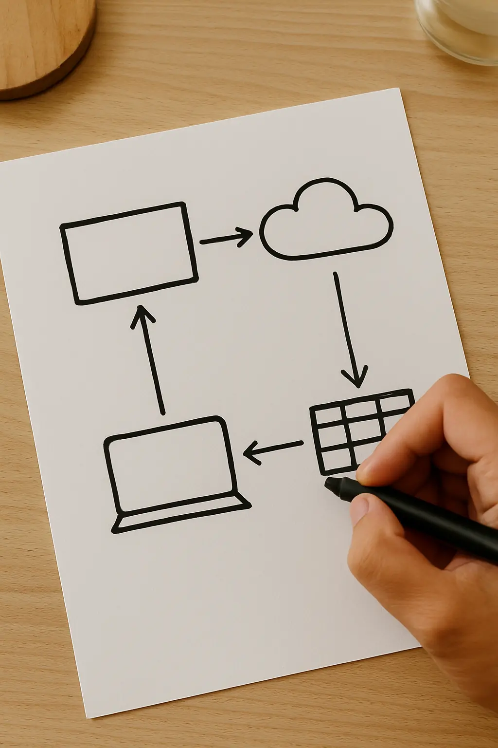A simple map that shows sources, systems and manual steps. This reveals which integrations you really need and which manual steps must be removed first.